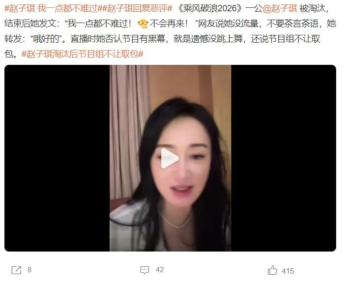 随后,赵子琪接受采访表示自己误会节目组,这只是正规的流程,自己是第一个被淘汰的,所以并不知道。从这点上看,姐姐真的很善良,还帮助节目组解释。